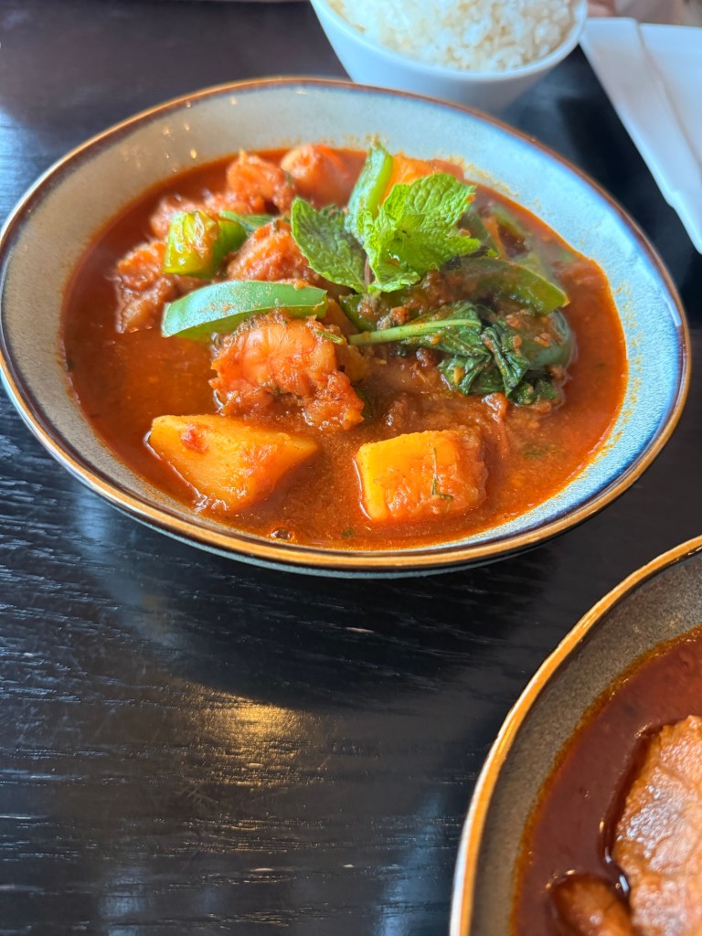 - Entrees – Pickled mango Pork and Shrimp Curry